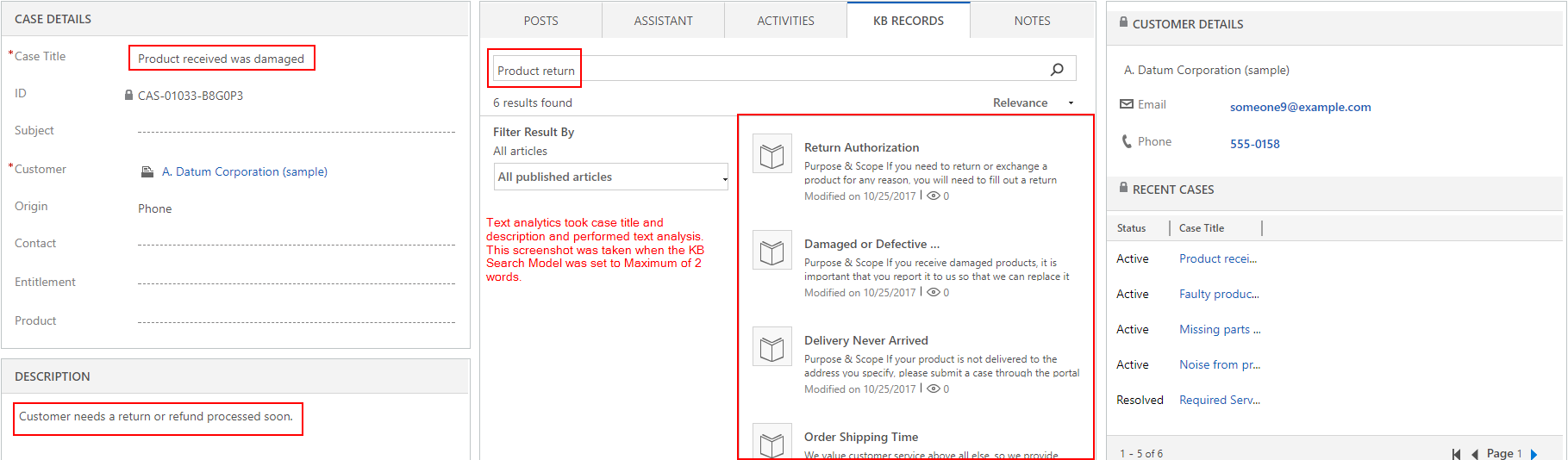 Add Text Analytics power to suggest KB Article search on Case