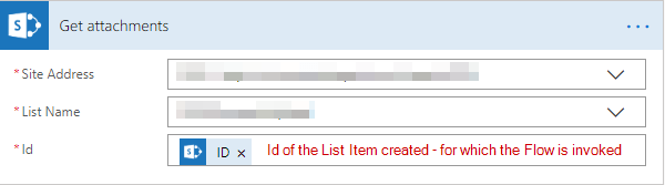This action gets all the attachment data for a particular list item. In this case it would be the created list item. Point to note here is that it does not give you the attachment contents.