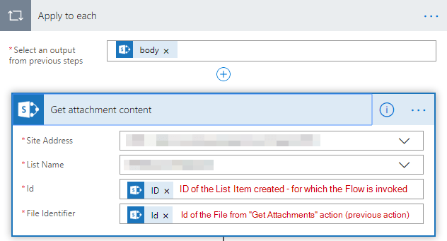 The above action gives you a list of attachment data and hence to fetch the attachment contents we need to loop through each of the attachments. The loop element here would be the “body” of action prior to this.