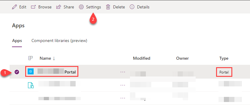 - Open Power Apps portals admin center