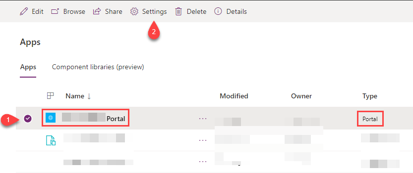 - Open Power Apps portals admin center
